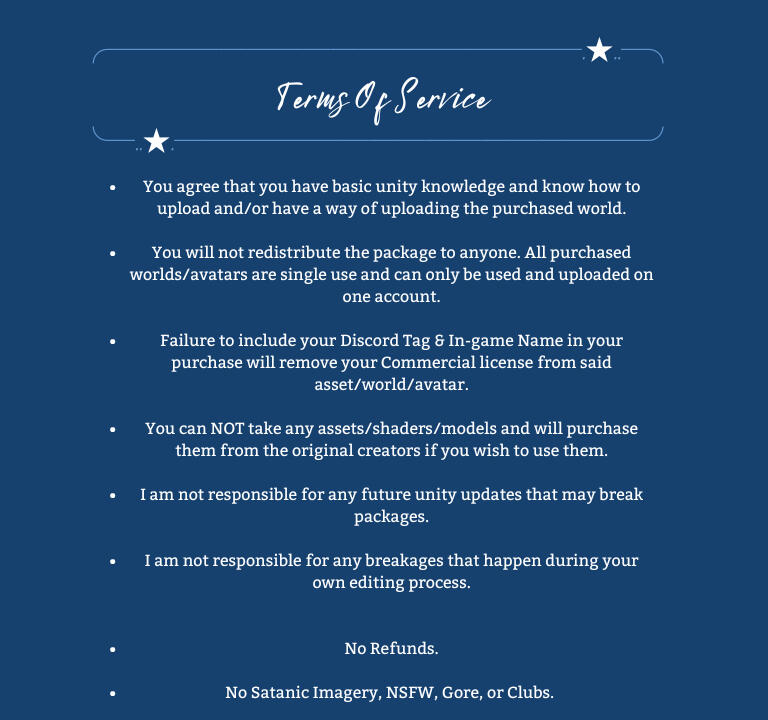 Terms Of Service !!For any further questions, Join The Discord. ♡